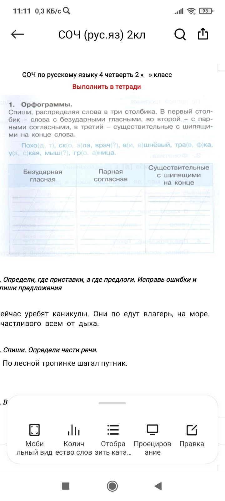 Спиши, распределяя в три столбик. в первый столбик - слова с безударными гласными, во второй - с парными согласными, в третий - существительные с шипящими на конце слова