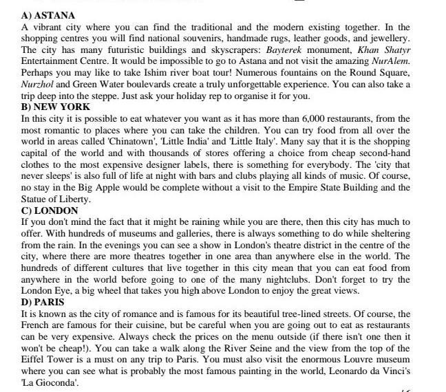 cities (A-D). Some of the cities may be chosen more than once. When more than one