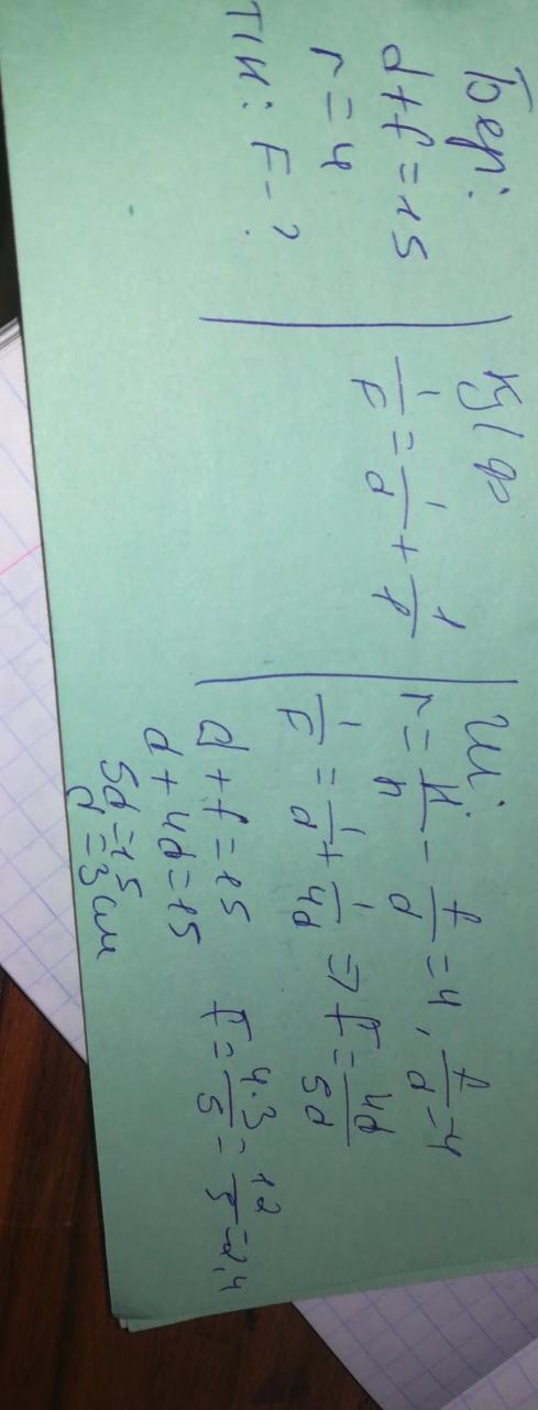 Каково фокусное расстояние вогнутого сферического зеркала, если оно дает четырехкратное истинное изображение объекта? Расстояние между объектом и изображением - 15 см.
