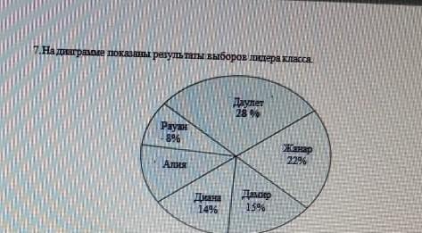 а) Алия = 100 % - 8% (Рауан) - 28% (Джулет) - 22% (Жанар) - 15% (Дамир) - 14% ( Диана ) = 13%