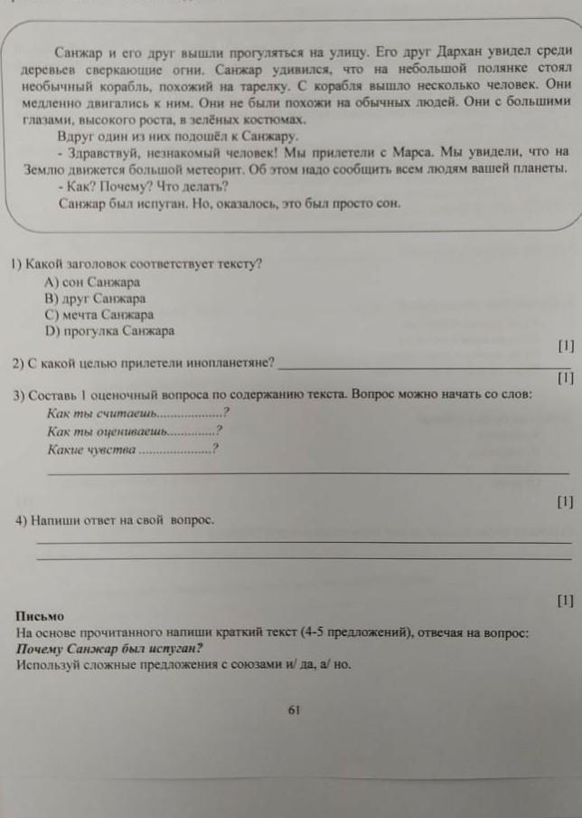 Можно предположить, что Санжар испугался потому, что если метеорит упадёт на землю, то многие люди могут пострадать. А это значило, что и он и его близкие могли пострадать. И именно поэтому мальчик испугался. Так так он любил своих близких, и переживал за них, он очень напугался, что им может быть причинен вред.