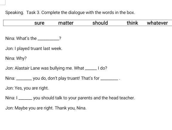 Speaking. Task 3. Complete the dialogue with the words in the box.