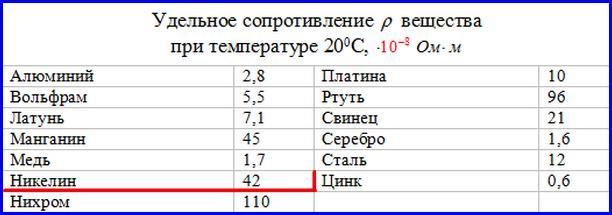 ρ₂=42*10⁻⁸ Ом*м - никелин;