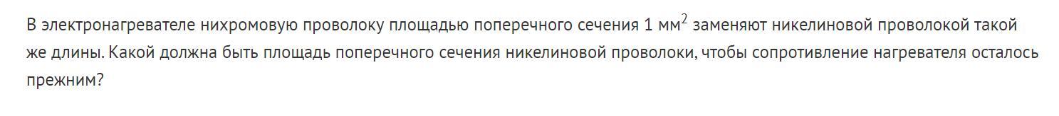 Площадь поперечного сечения S₂=0,38 мм² провода из никелина должна быть в 2,6 раза меньше ППС S₁=1мм² провода из нихрома