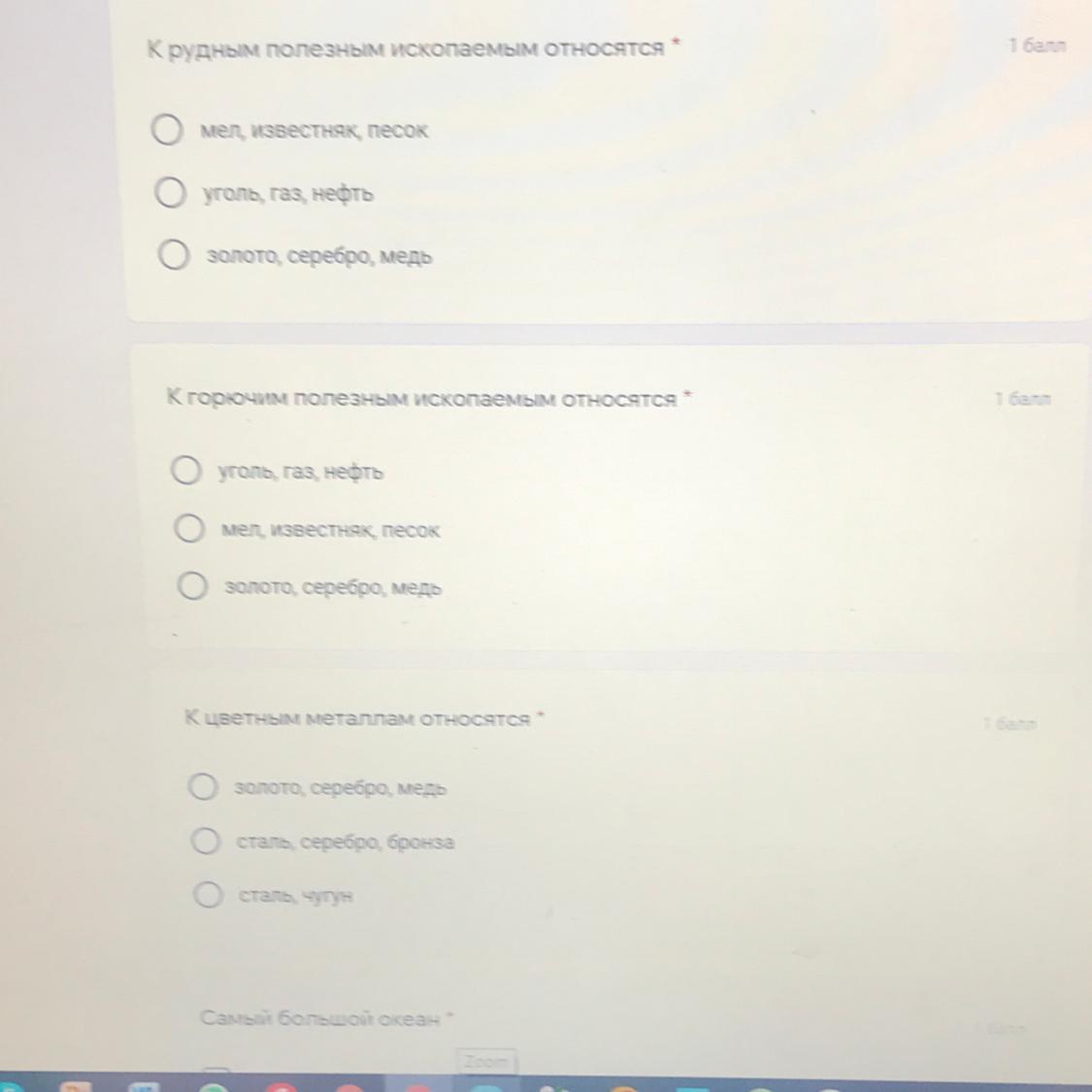 Ответ:1 мел известняк песок 2 уголь газ нефть 3 золото серебро медь