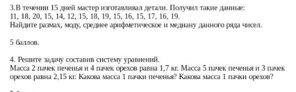 Ответ: размах: 9, мода: 15, среднее арифметическое: 16, медиана: 18