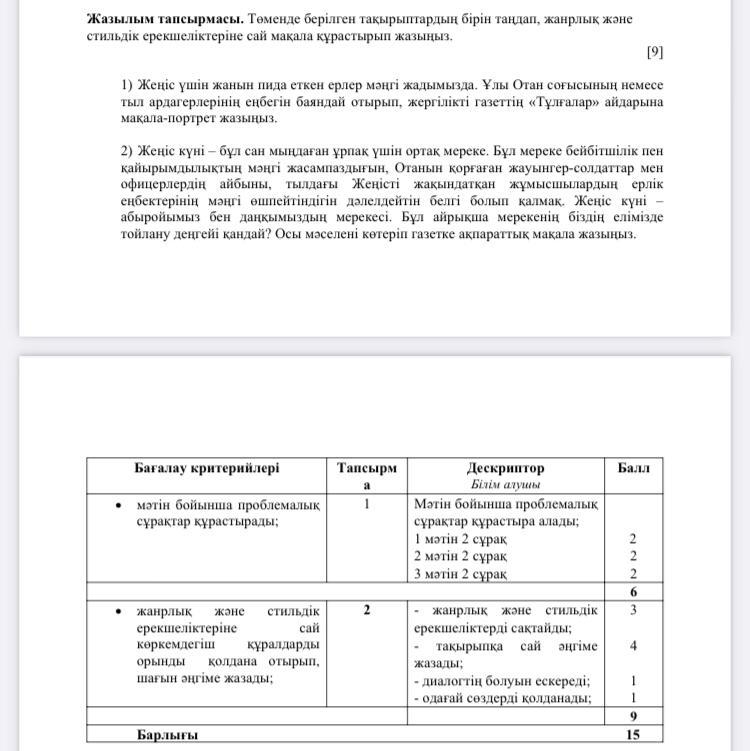 Жазылым тапсырмасы. Төменде берілген тақырыптардың бірін таңдап, жанрлық жəне стильдік ерекшеліктеріне сай мақала құрастырып жазыңыз. ПОМОГИТЕ ПЛИЗ ДАМ 100 БАЛЛОВ