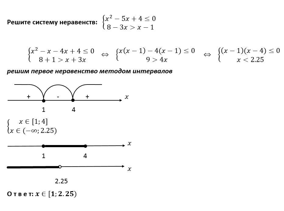 x ∈ [1; 2.25)