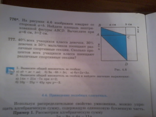 На рисунке 4.6 изображён квадрат со стороной a+b. Найдите площадь заштрихованной фигуры