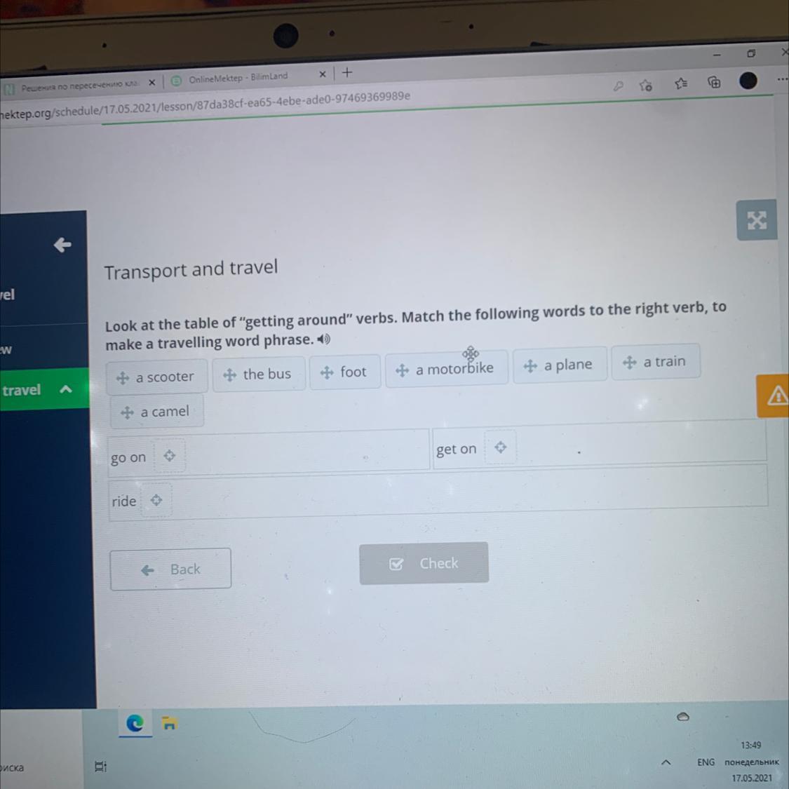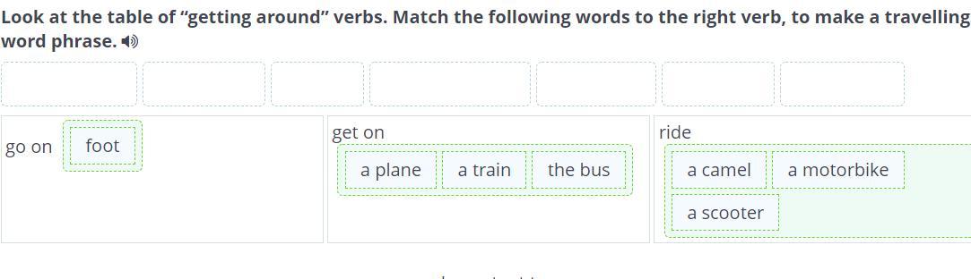Look at the table of "getting around" verbs. Match the following words to the right verb, to