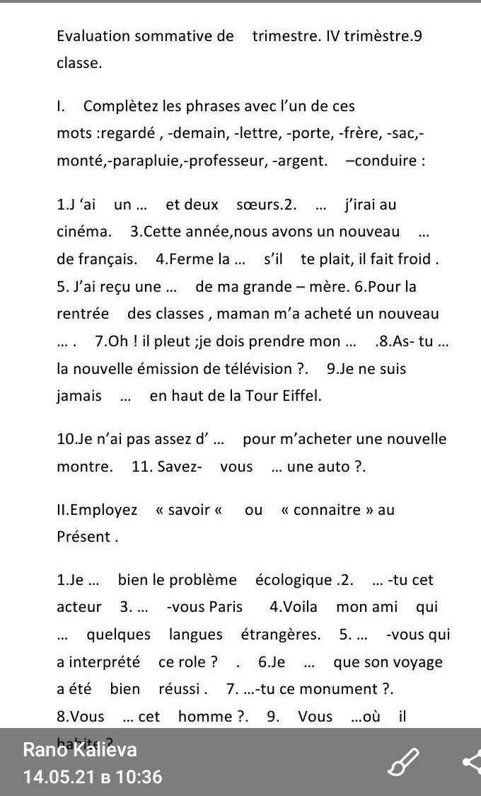 7.Oh ! il pleut ;je dois prendre mon parapluie ... .8.As- tu regardé
