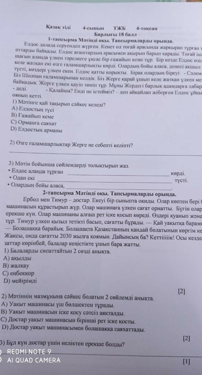 3). •Елдос алаңда тұрған үлкен тəрелкеге ұқсас бір ғажайып кемені көрді