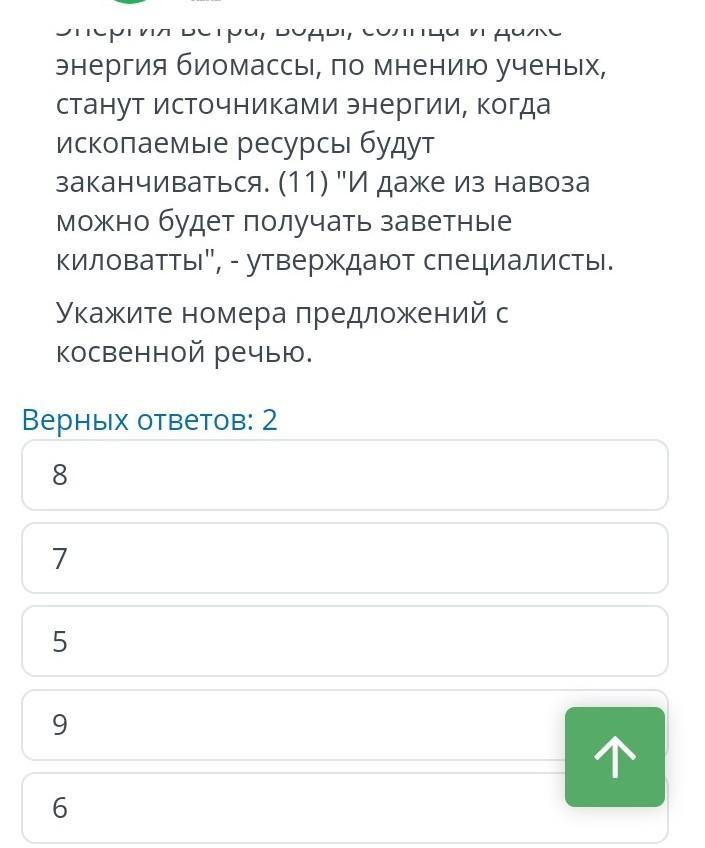 (1) ЭСКПО – это выставка технических достижений. (2) Казахстанская площадка не стала исключением. (3) Страны негласно соревнуются не только в гостеприимстве и привлечении туристов, но и в научных открытиях. (4) На ЭКСПО-2017 главные экспонаты – разработки возобновляемых источников энергии. (5) "В будущем, - утверждают профессионалы, - человечество не будет зависеть от ограниченных ресурсов". (6) Ученые заявляют, что "умная" техника, "умные" дома и даже "умная" обувь ждут нас уже совсем скоро. (7) Они утверждают, что некоторые экземпляры находятся ещё в разработках, а некоторые уже применяются в быту. (8) "Будущее за энергией природы", - убеждают молодые ученые Казахстана. (9) Каждый павильон на выставке рассказывает о «зелёной» энергетике и о примерах использования её в своей стране. (10) Энергия ветра, воды, солнца и даже энергия биомассы, по мнению ученых, станут источниками энергии, когда ископаемые ресурсы будут заканчиваться. (11) "И даже из навоза можно будет получать заветные киловатты", - утверждают специалисты.