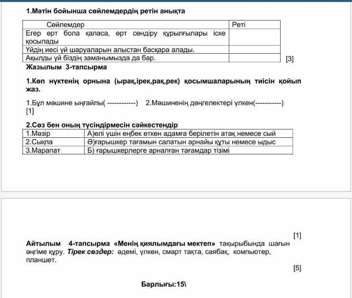 1.Мәтін бойынша сөйлемдердің ретін анықта