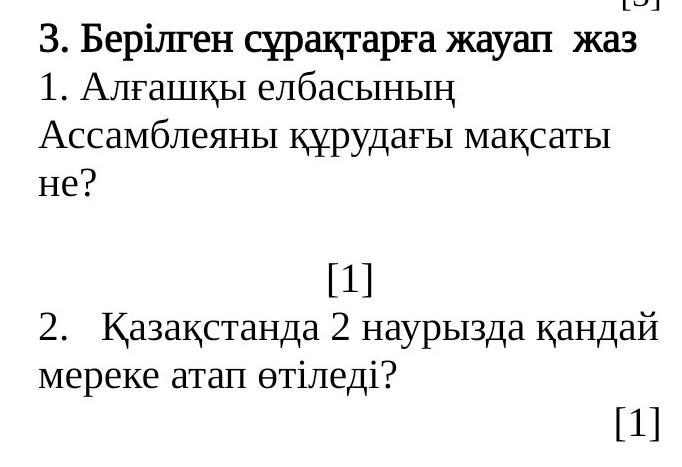 1. Алғашқы елбасының Ассамблеяны құрудағы мақсаты не?