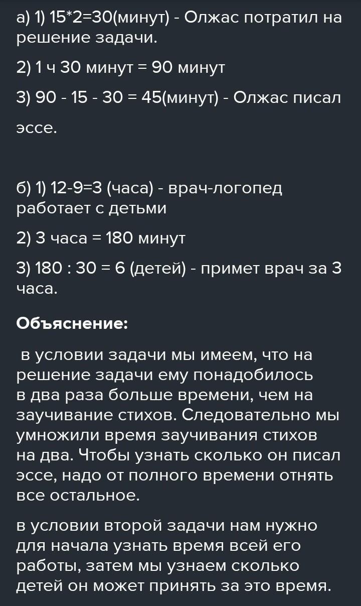 а) Олжас выполнил домашнее задание за 1 ч 30 минут. Он по-