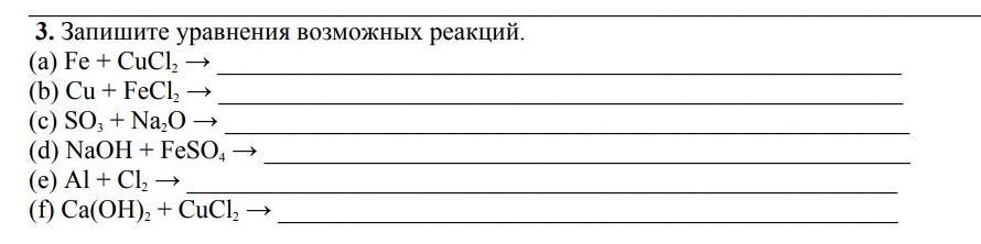 FeCl2 + Cu≠ т.к. Cu менее активный металл, чем Fe и она не вытесняет Fe из р-ра его солей.