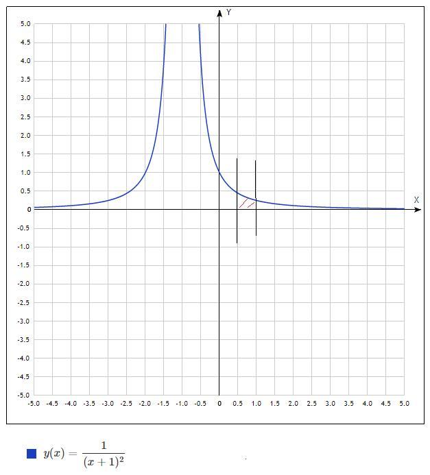 y=∫t^(-2)dt=t^(-1)/(-1)=-1/t=-1/(x+1)=-1/(2+1)-(-1/(1+1))=1/2-1/3=1/6