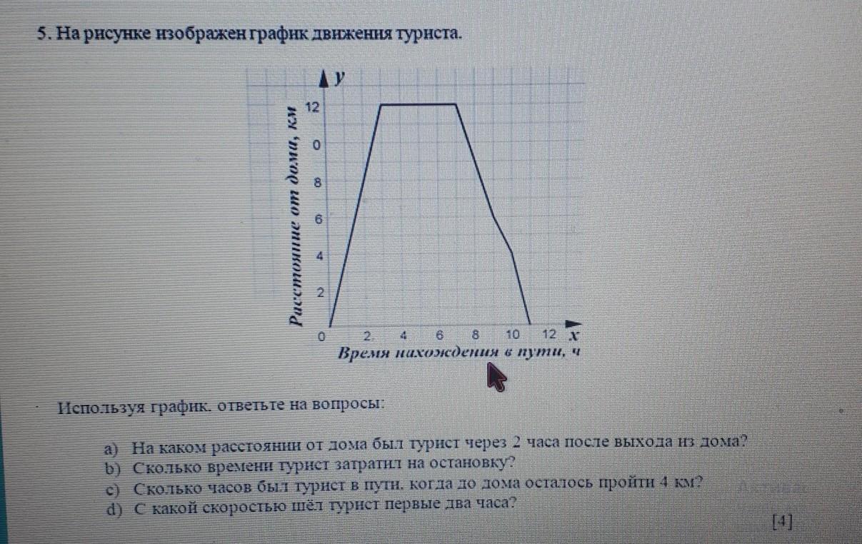 c) Сколько часов был турист в пути. Когда до дома осталось пройти км