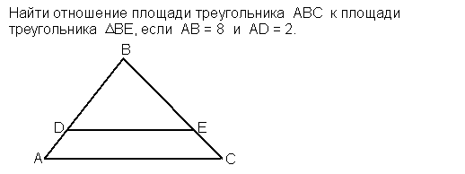 Найдите отношение площади треугольника ABC к площади треугольника DBE, если AB=8 и AD=2