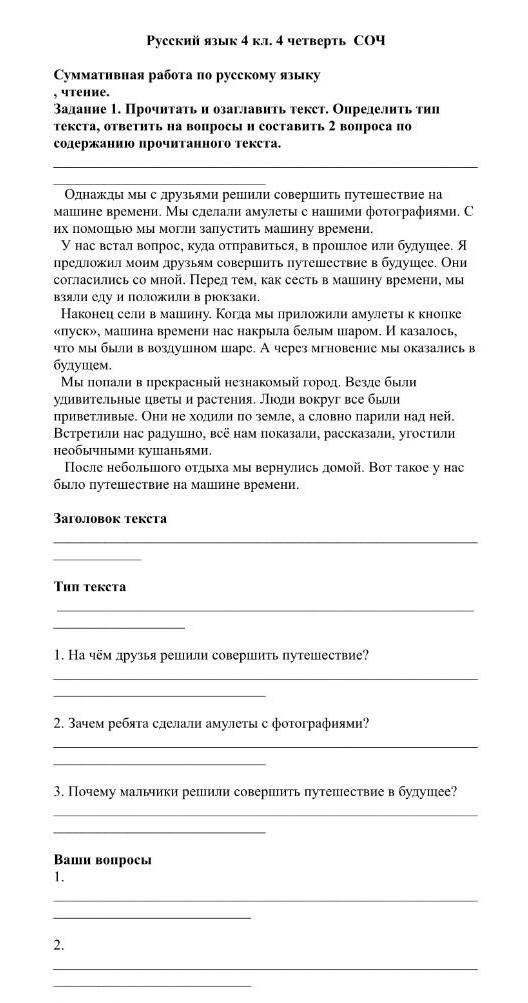 1. Каковы были ощущения мальчиков, когда они сели в машину времени? (ответ: им казалось, что они в воздушном шаре)