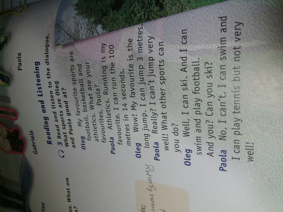 Олег:так,я могу кататься на лыжах. И я могу плавать и играть в футбол.а ты?можешь кататься на лыжах?