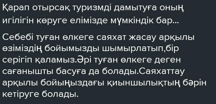 Қарап отырсақ, туризмді дамытуға, оның игілігін көруге елімізде мүмкіндік бар...
