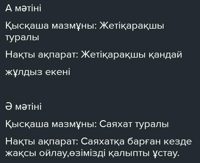 А мәтіні ә мәтіні қысқашы мазмұны нақты ақпарат