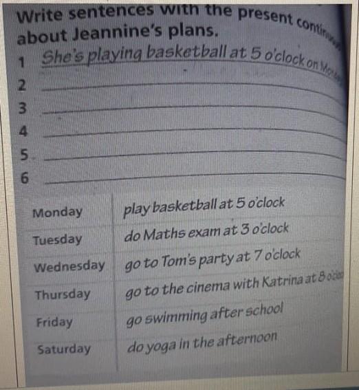 4) She's going to the cinema with Katrina at 8 o'clock on Thursday