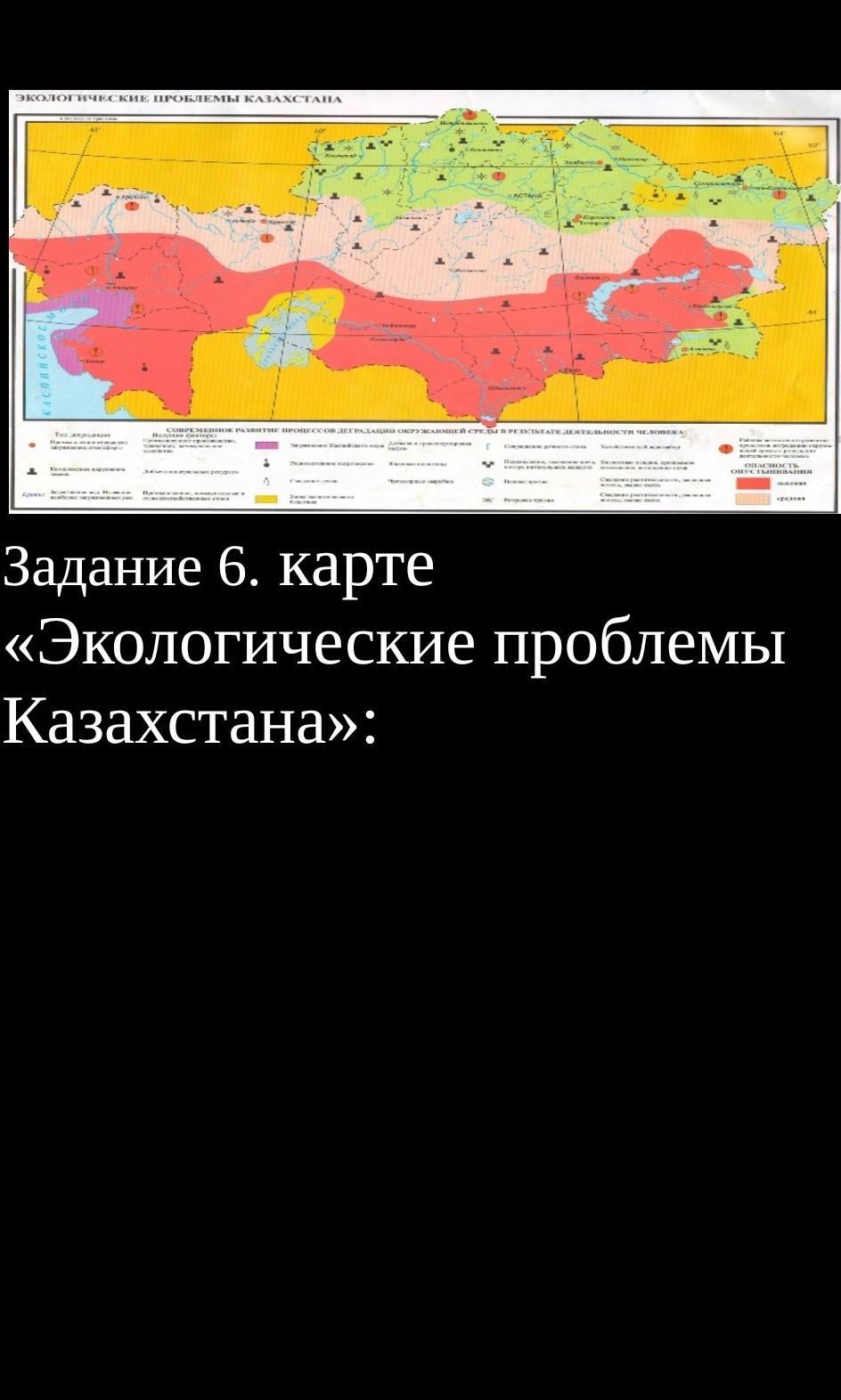 Задание 6. карте «Экологические проблемы Казахстана»: