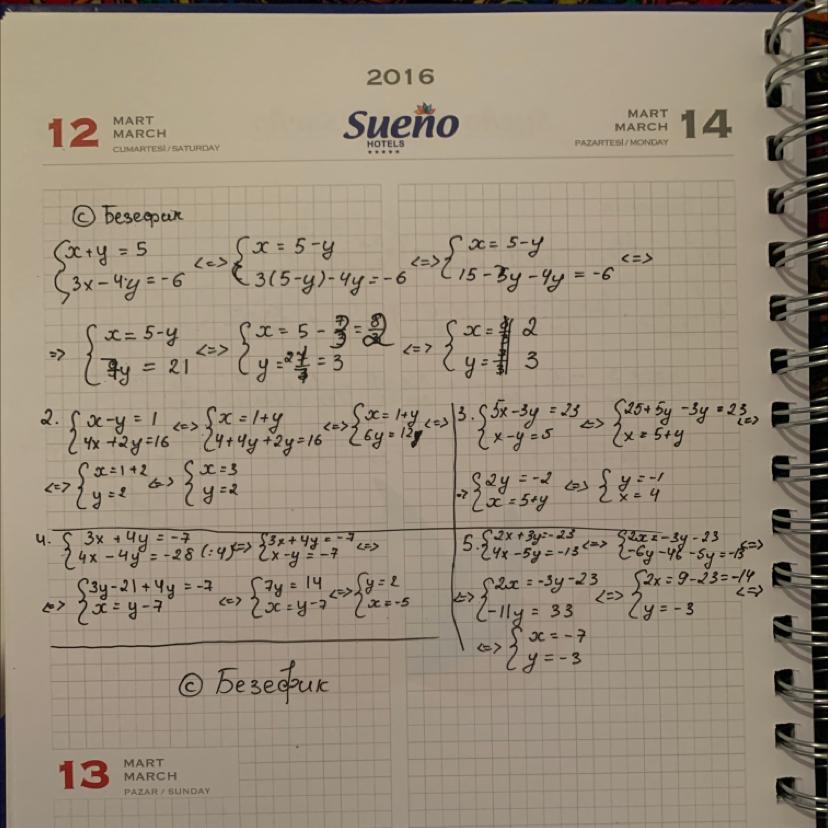 1) x + y = 5 |×4
