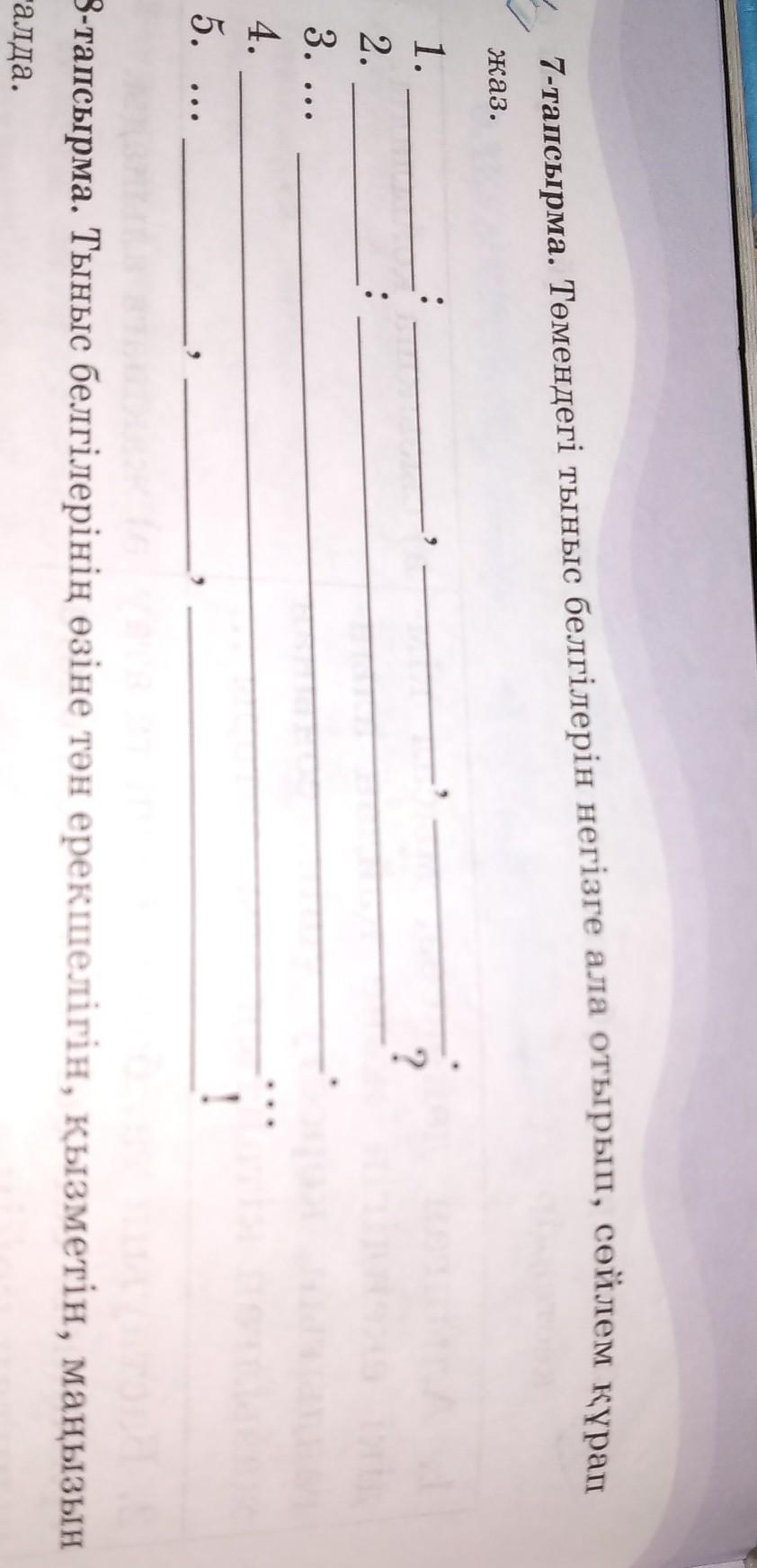 7-тапсырма. Төмендегі тыныс белгілерін негізге ала отырып, сөйлем құрап