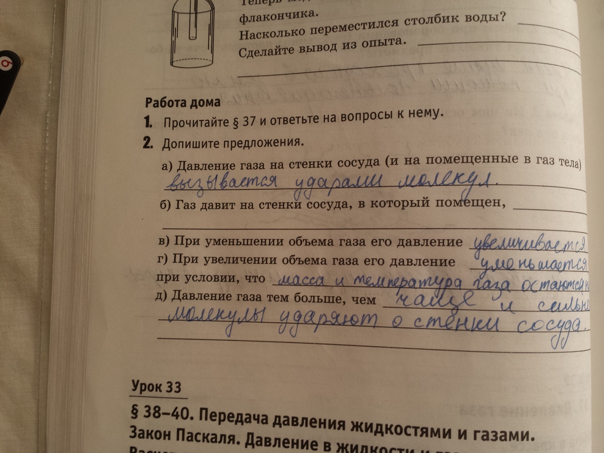 Газ давит на стенки сосуда, в который помещен, по всем направлениям одинаково