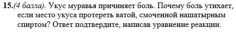 15) В состав муравьиного яда входит муравьиная кислота . Чтобы боль утихла, нужно нейтрализовать кислоту, для чего используют растворы, обладающие щелочной реакцией, например, нашатырный спирт: