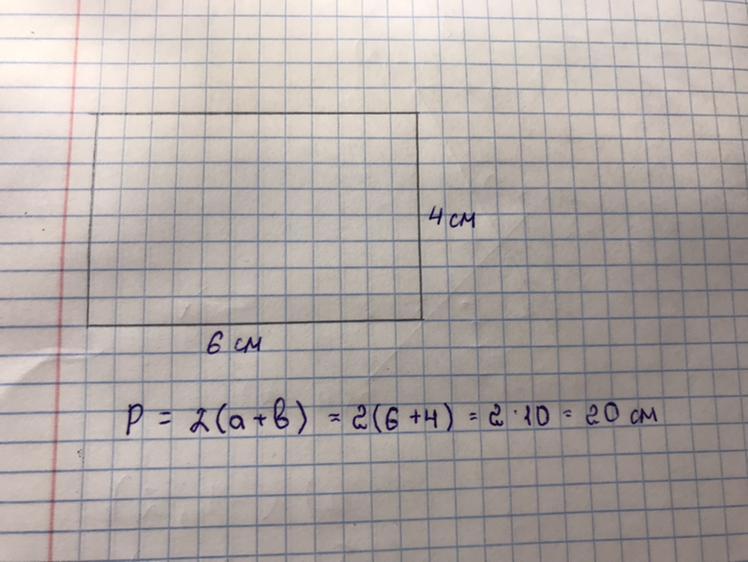 начертите прямоугольник со сторонами 6 см и 4 см.вычисли периметр этого прямоугольника. #4 2 класс можно фото ответ пж