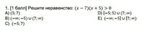 Решение неравенства: х∈(-∞; -5)∪(7; +∞). Ответ В).