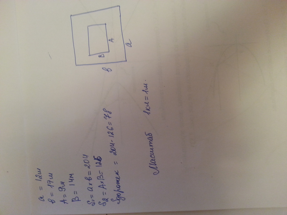 центре прямоугольного сквера длиной 17м и ширеной 12м разбили прямоугольный цветник длиной 14м шириной 9м. Остальную часть парка занимают дорожки. Опредили площадь дорожек.