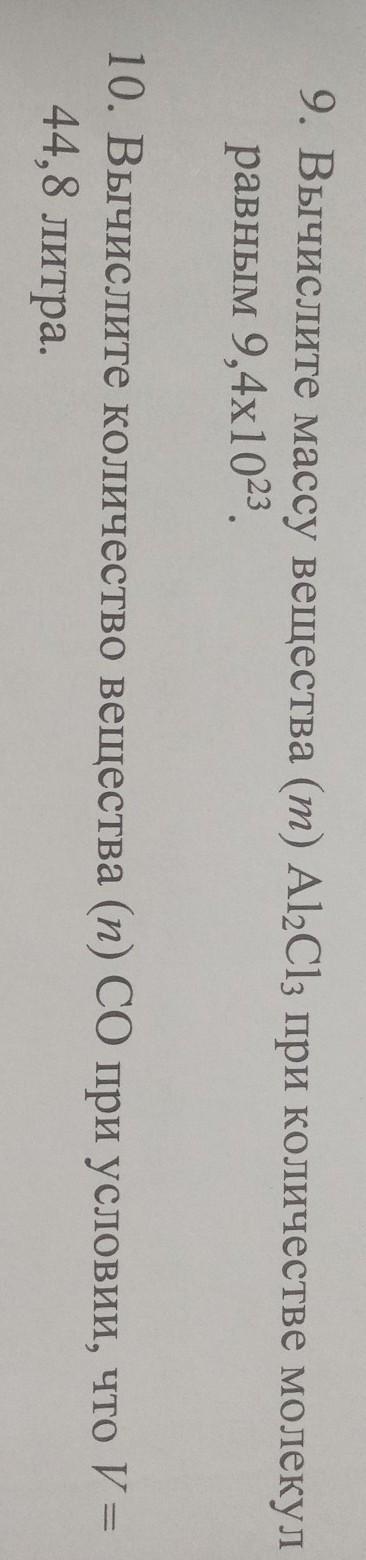 9. n=N/Nα=9,4*10^23/6*10^23=1,56 моль