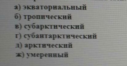 экваториальный , тропический, актический, насчет умеренного плюс минус
