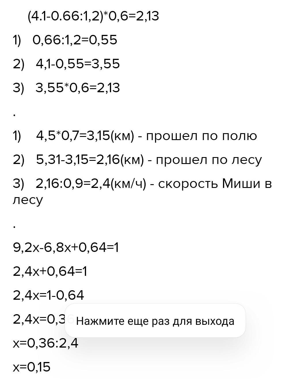 Решите уравнение: 9,2 – 6,8 + 0,64 = 1