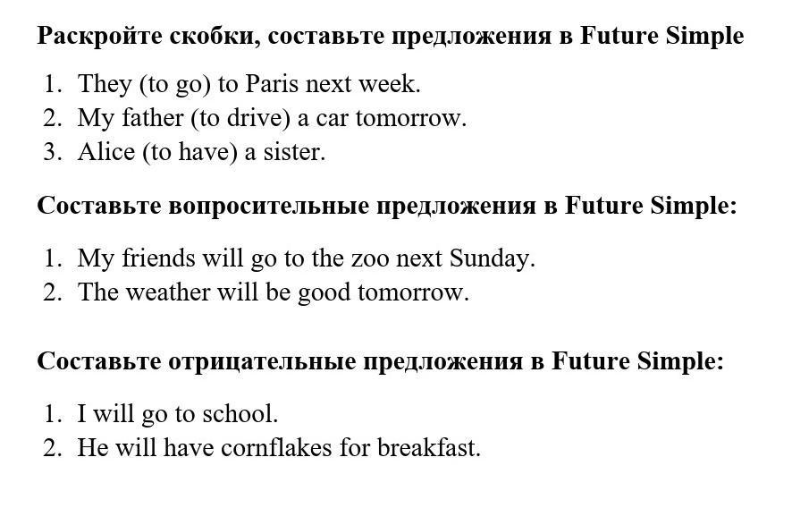 - He will not have cornflakes for breakfast. (He won't have cornflakes for breakfast.)