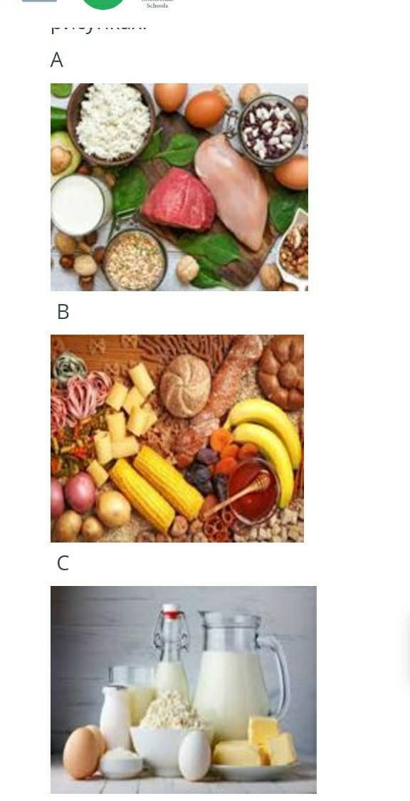 1) Определите, какие питательные вещества преимущественно содержатся в продуктах питания, приведенных на рисунках: