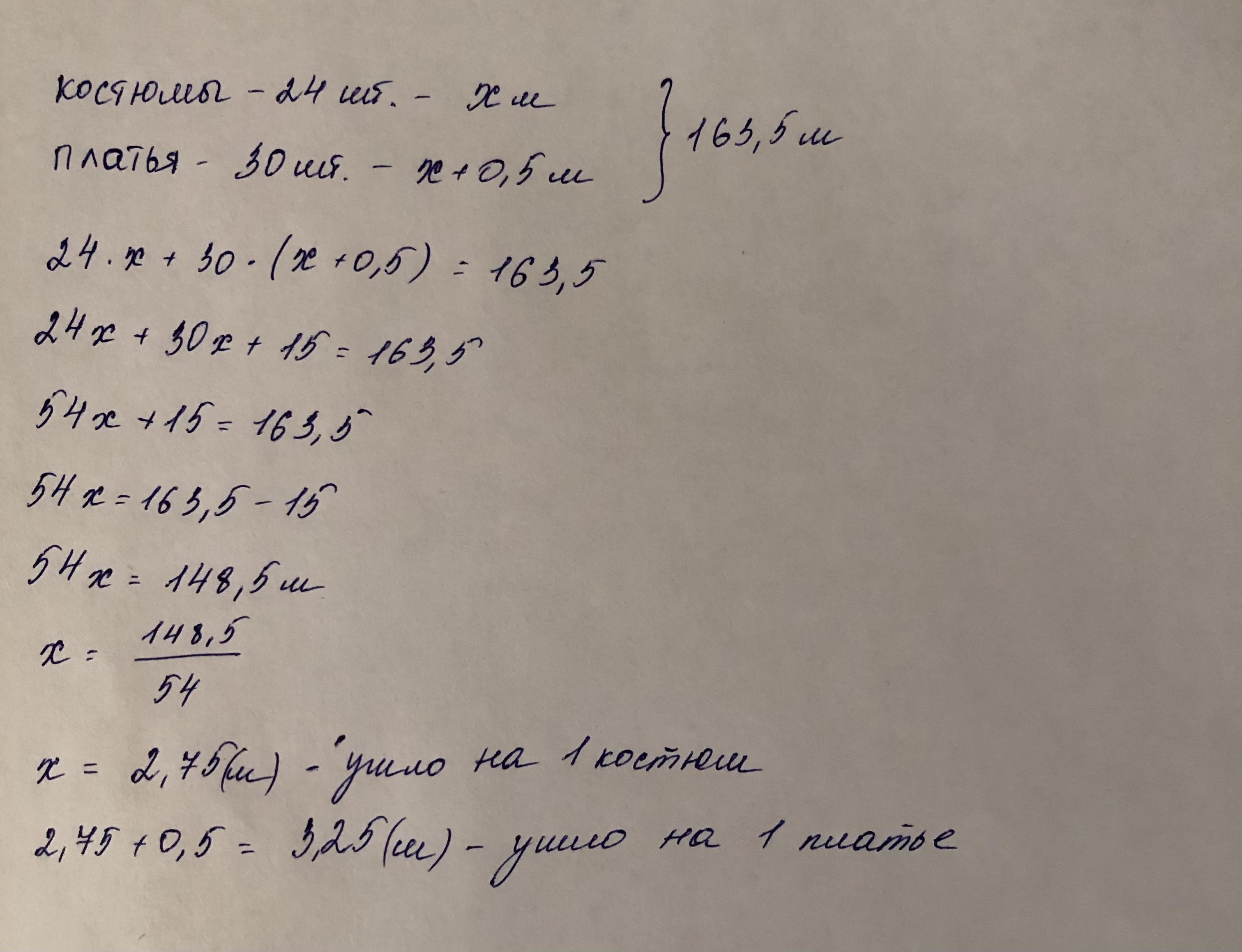 на 0,5 м ткани больше, чем на каждый костюм. Сколько ткани по-