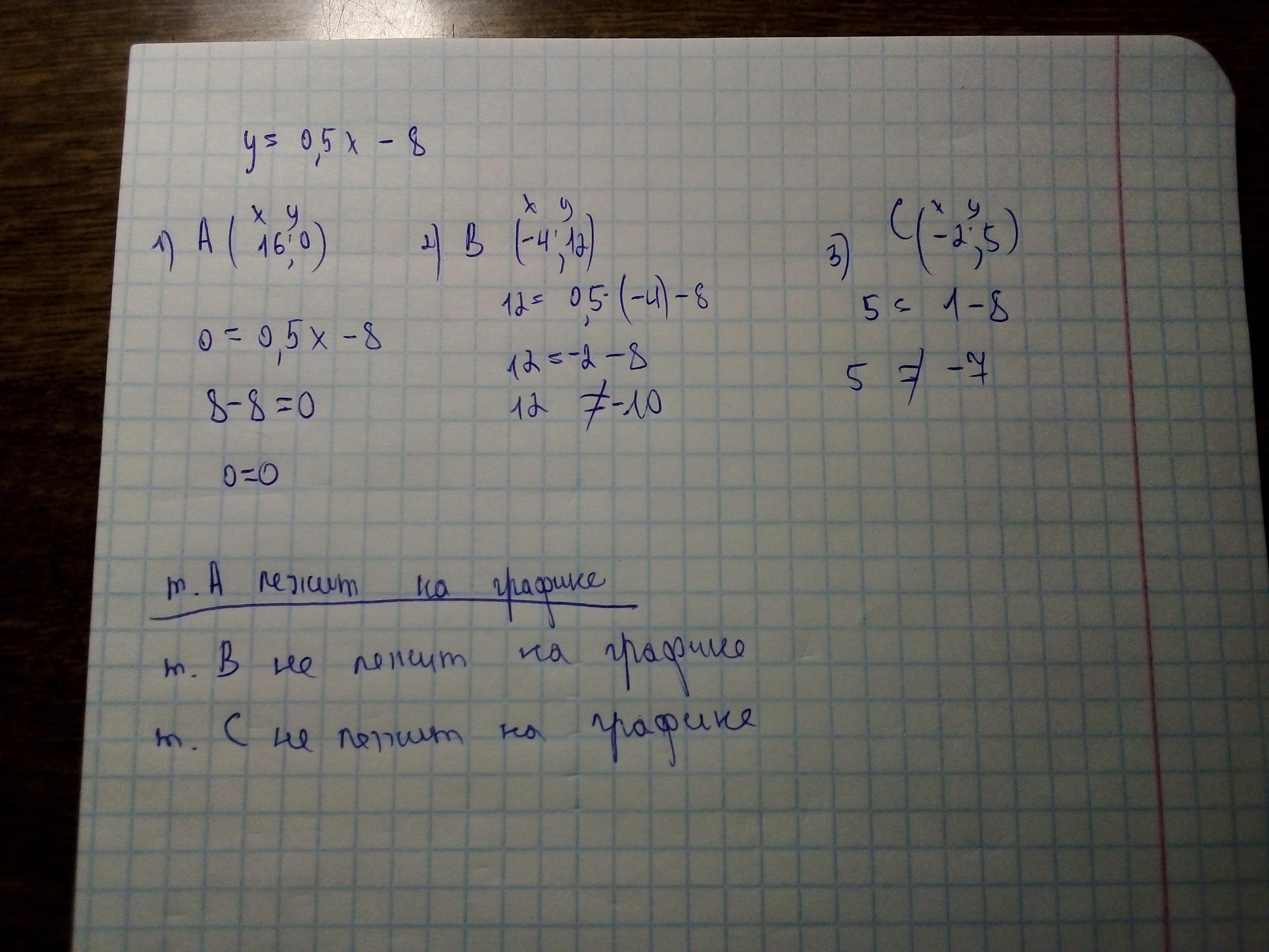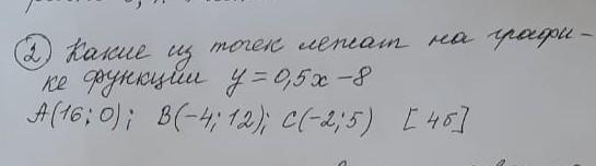 какие из точек на графика функции у=0,5x-8 А(16;0); В(-4;12 ); С(-2;5) прошу прошу