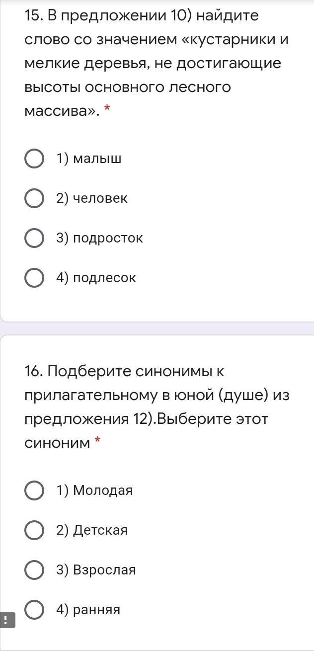 . В предложении 10) найдите слово со значением «кустарники и мелкие деревья, не достигающие высоты основного лесного массива» надо ответить на 2 вапроса