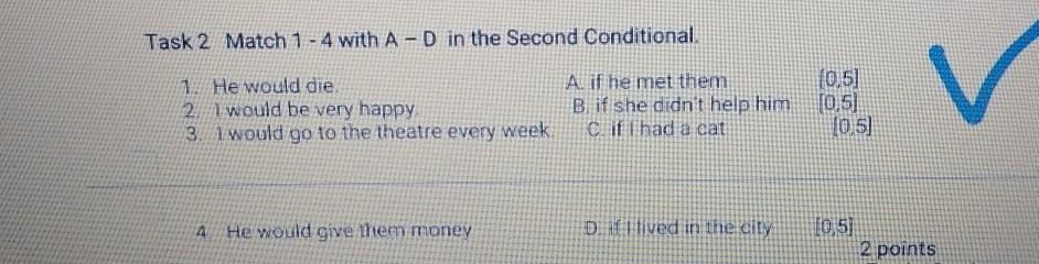 Task 2 Match 1 - 4 with A - D in the Second Conditional.