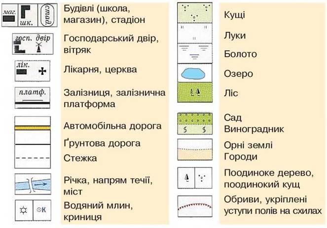 Ответ:План місцевості — це креслення вигляду зверху невеликої ділянки земної поверхні. Різноманітні об'єкти на плані зображують за допомогою умовних знаків і розміщують відповідно до сторін горизонту.