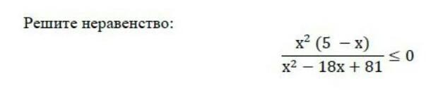 X^2(5-x)/x^2-18x+81=<0