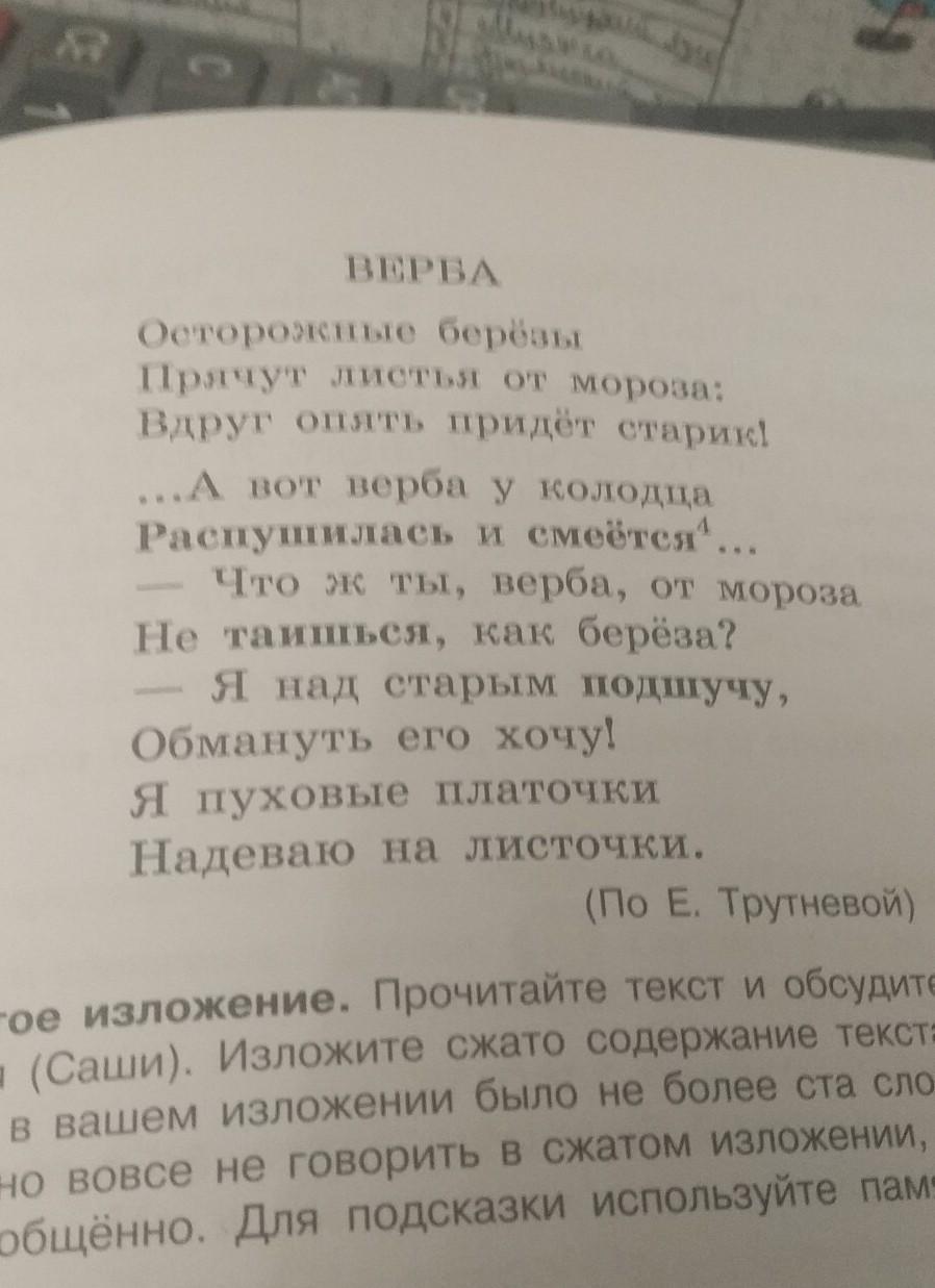 прочитайте стихотворение.выпишите выделенные глаголы и выполните их морфологический разбор.В каком предложении слово верба - подлежащее,а в каком - обращение?