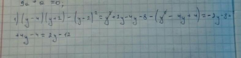 1. Упростите выражение: (y-4) (y+2) - (y-2)2 ( два находится в степени)